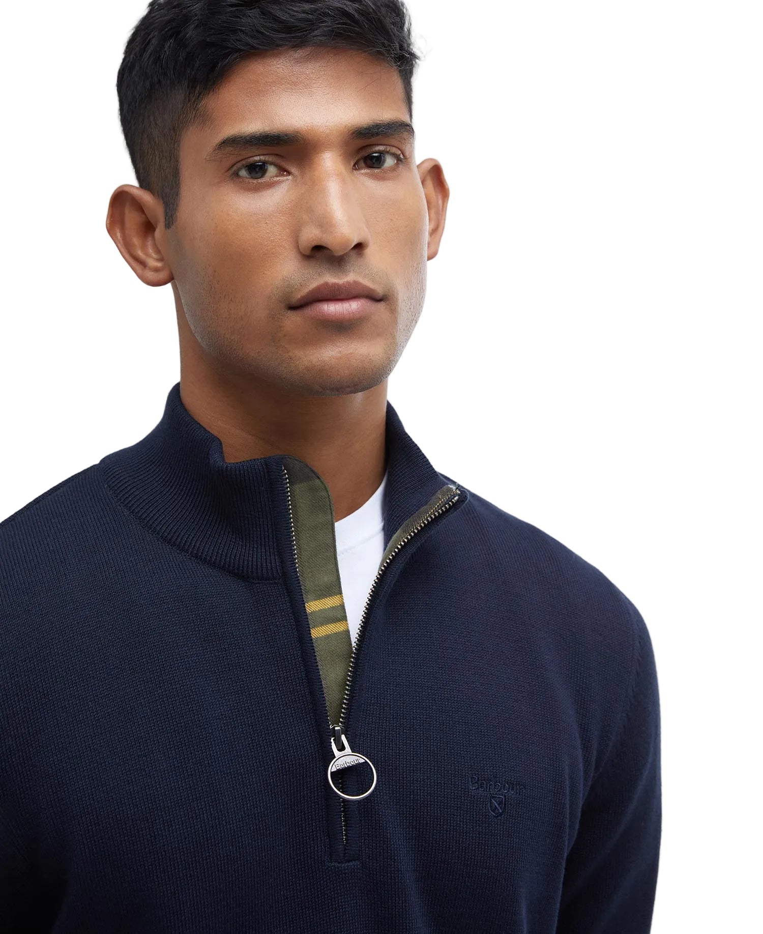 A wardrobe essential, this half-zip jumper is elevated with subtle Barbour detailing. Coming in a lightweight Cotton knit, the zip closure is trimmed with tartan to the inner facing and features our signature ring-puller detail, while a tonal embroidered logo to the chest completes the look.