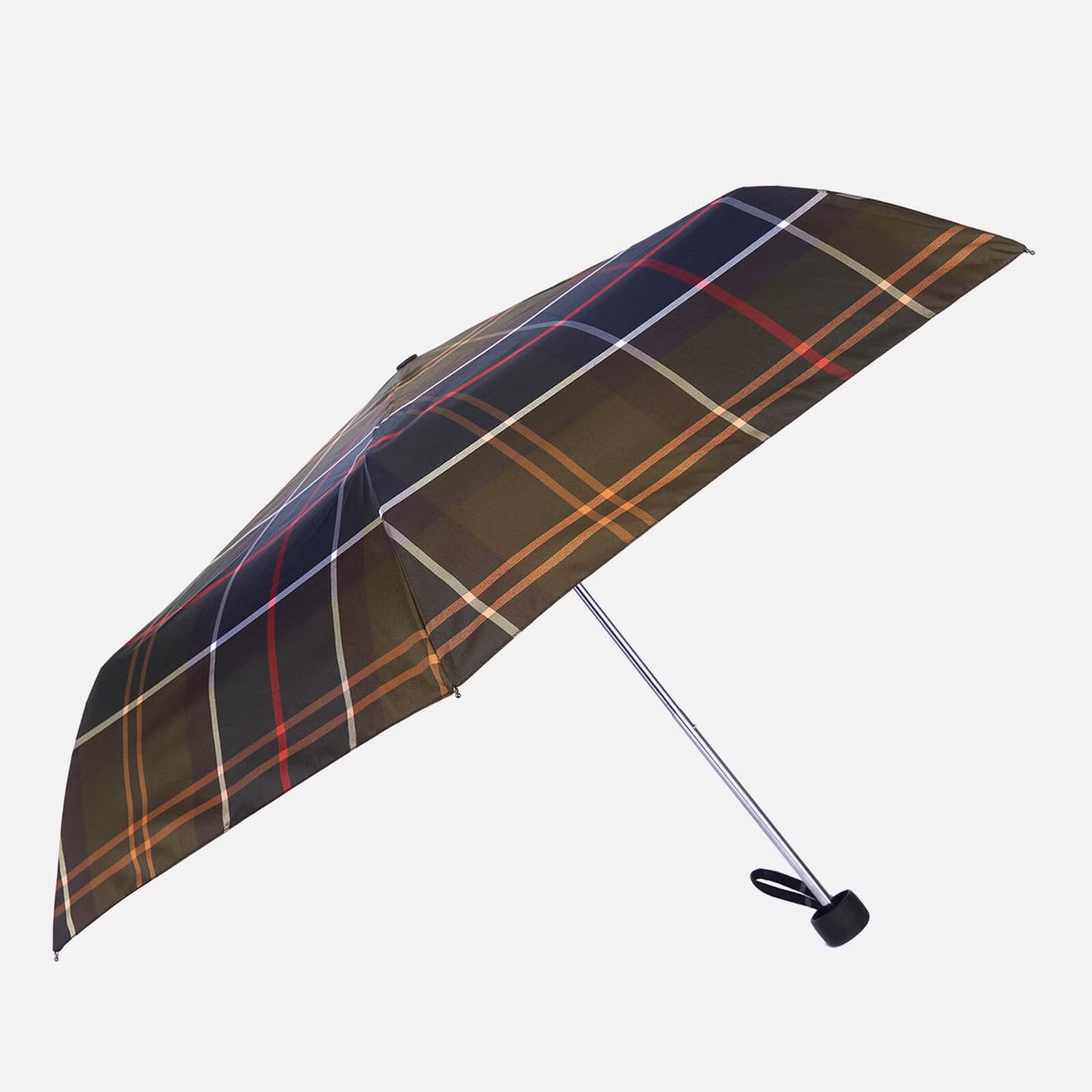 Barbour classic tartan umbrella with a telescopic design. The ‘Portree’ umbrella has a small handle with a wristlet. Finished with a matching umbrella cover with a Barbour logo tab.