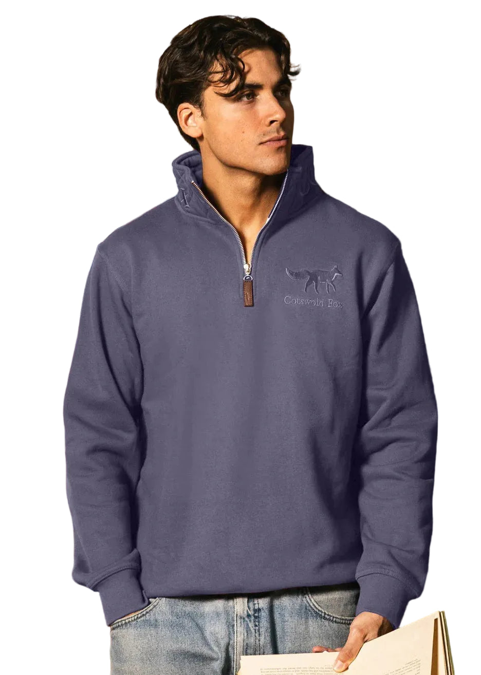 Our premium heavyweight unisex navy quarter zip jumper features our signature distinctive Cotswold Fox embroidery. Crafted for men and women, from organic cotton for all-day comfort and warmth, a zip funnel neck and soft ribbed hems and cuffs. This super comfortable layer is a must have, fun addition to your wardrobe!