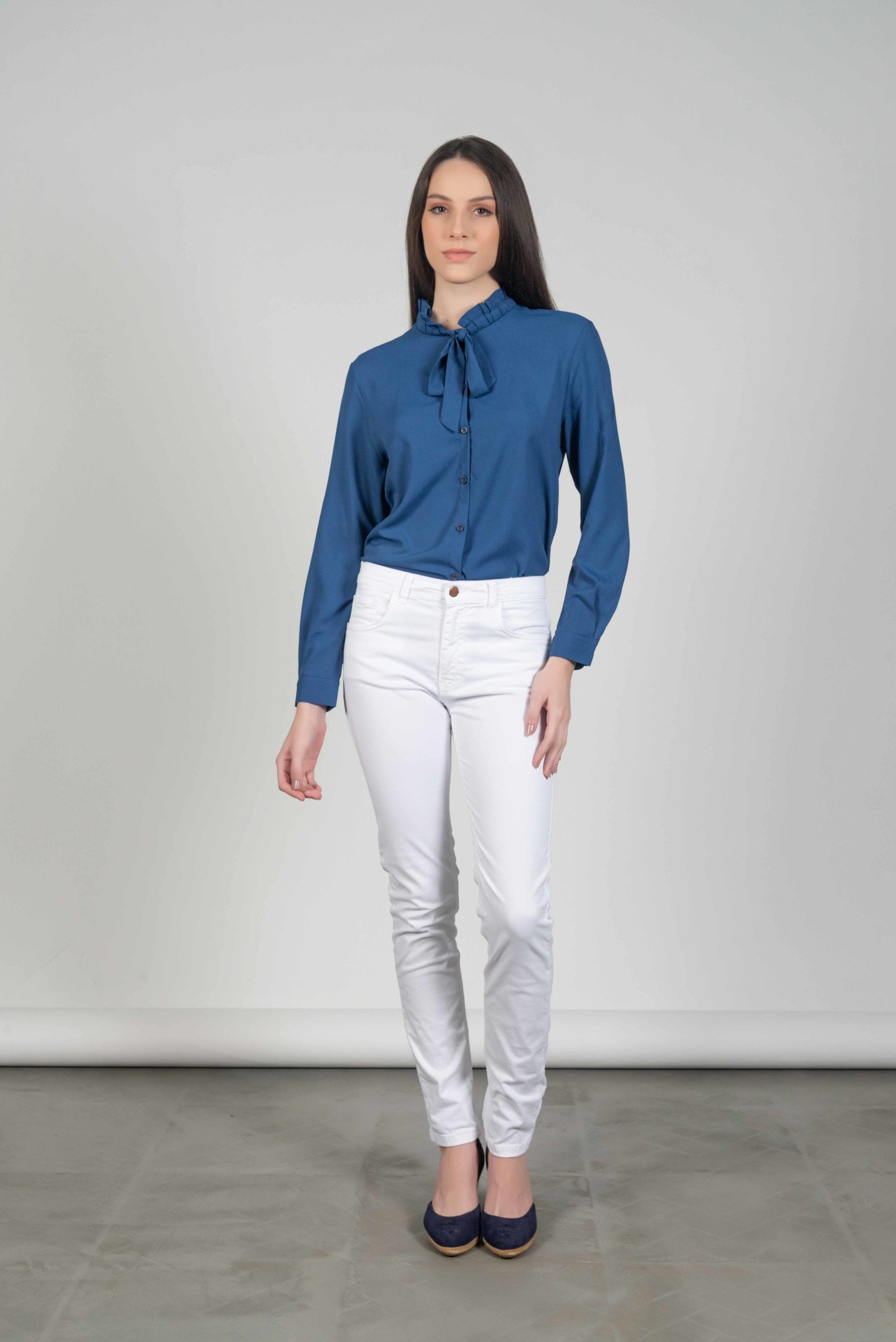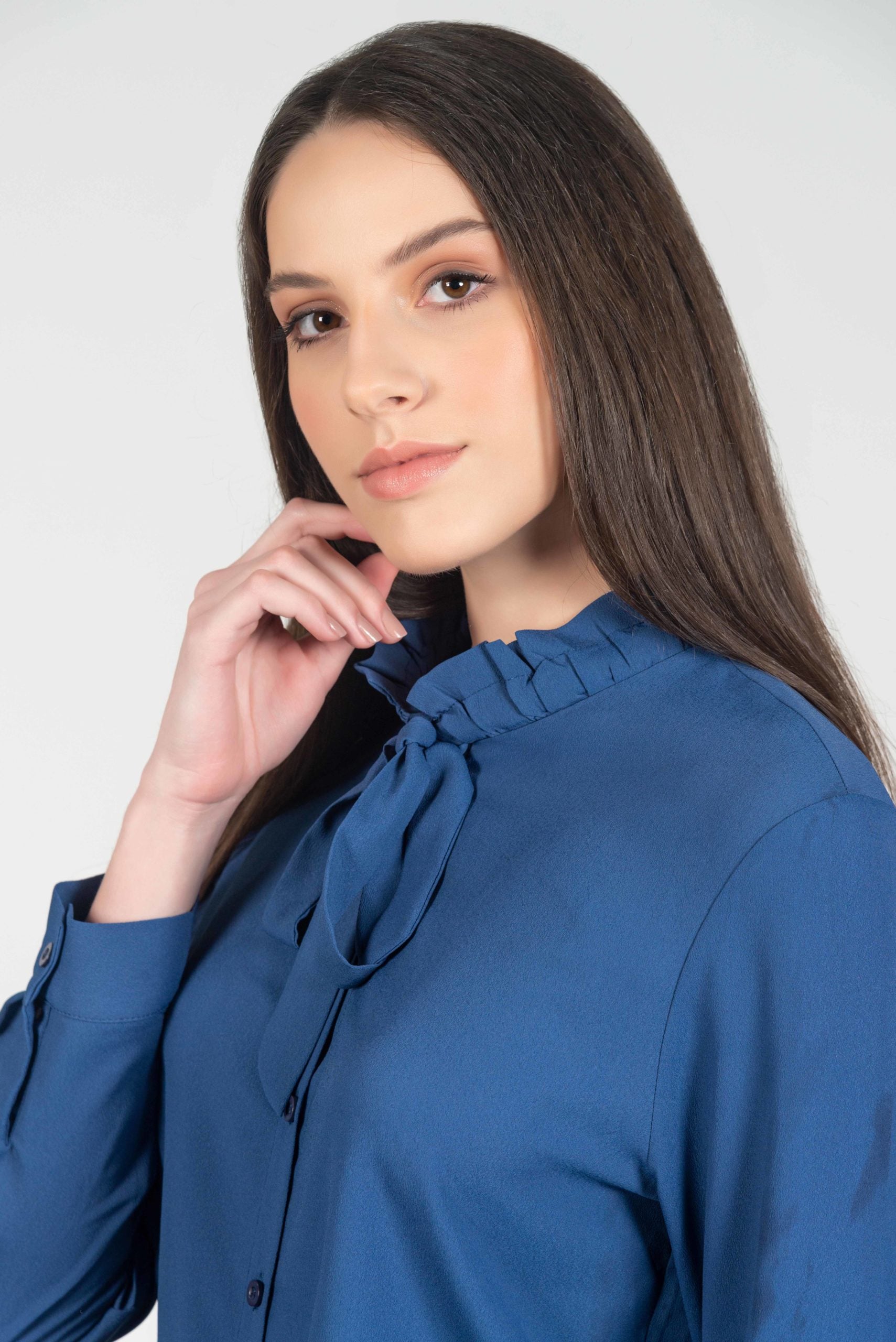 Hartwell Fran Women’s Frill Neck Tie Blouse - Navy