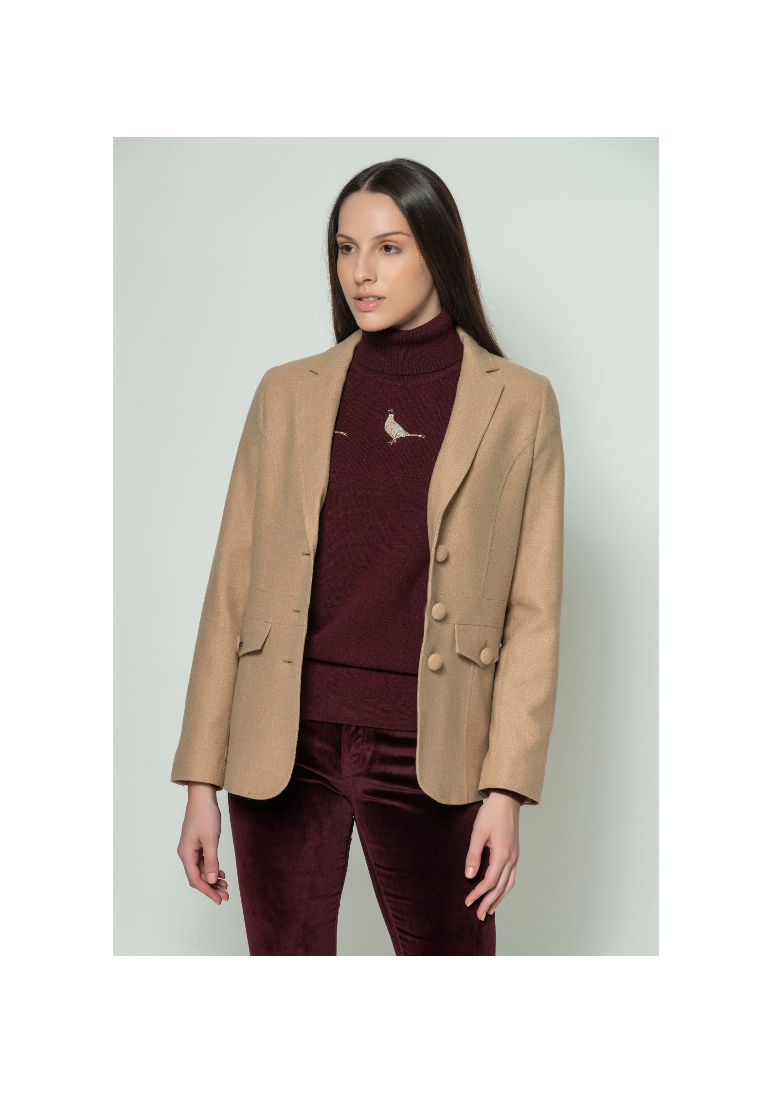 New from Hartwell, the Lilian blazer is made from pure wool. It features a faux suede collar for comfort, suede elbow pads and jetted front pockets with flaps. The jacket is fastened by two brown front buttons. The embroidered Hartwell stag logo just below the pocket adds a touch of elegance to the jacket. In a perfect colour for this Autumn season, the Lilian jacket will compliment so many other colour tones. Pair with a smart shirt, Demin jeans and long boots for a country style perfect for wearing to the races.