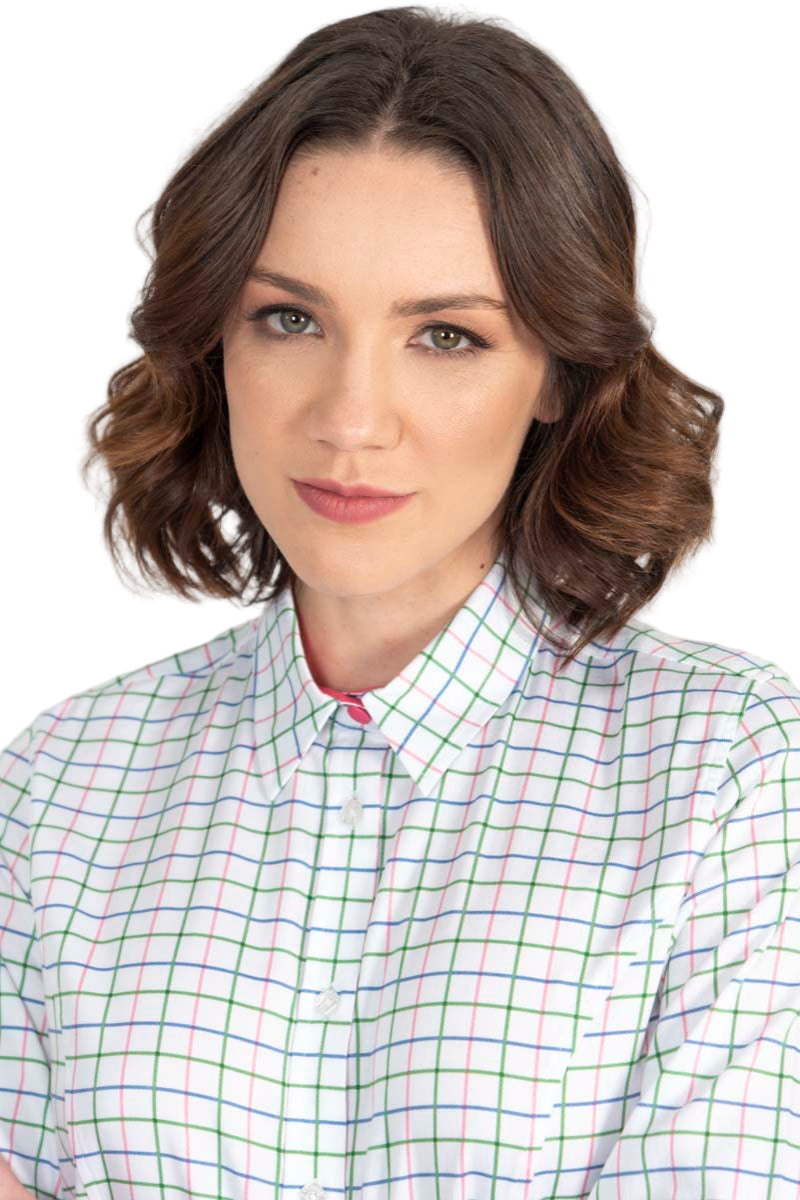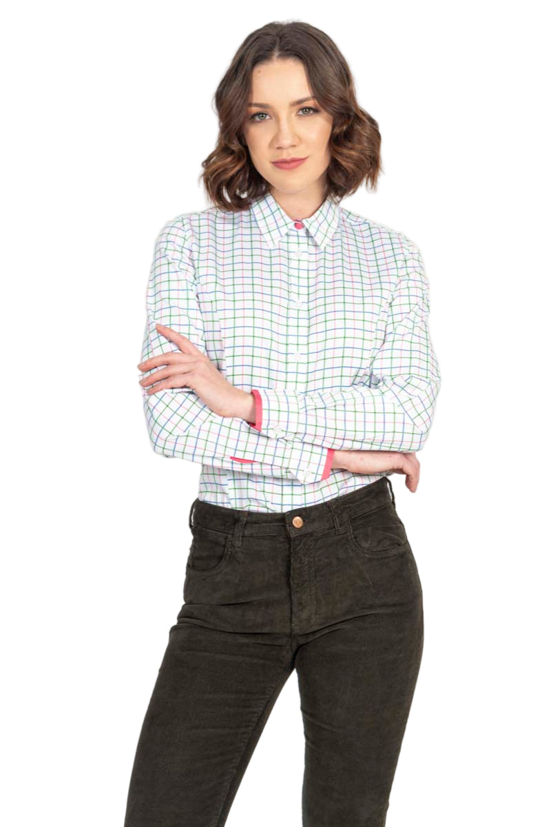 This brand new Check print has gorgeous pops of colour. 100% cotton satin lycra, it is a beautiful shirt with all the Hartwell details you’ve become accustomed to.