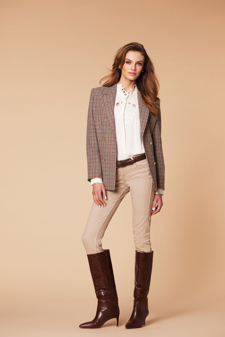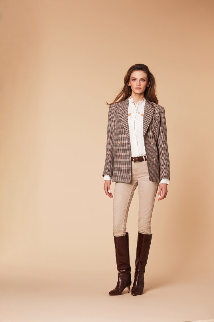 Introducing the perfect blend of luxury and affordability, our tweed Langley Blazer. This country-style blazer is designed to elevate your wardrobe with its classic and timeless design.