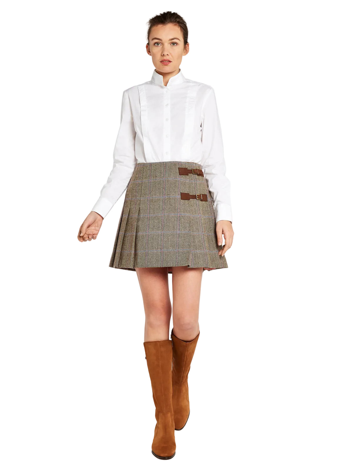 A country classic with a contemporary twist, the Blossom tweed skirt offers great versatility. Team the short, pleated skirt with a polo and light knit for a relaxed preppy style or a tailored shirt and jacket for workwear. Styles perfectly with a Dubarry Rhodes deck shoe or any Dubarry leather country boot.