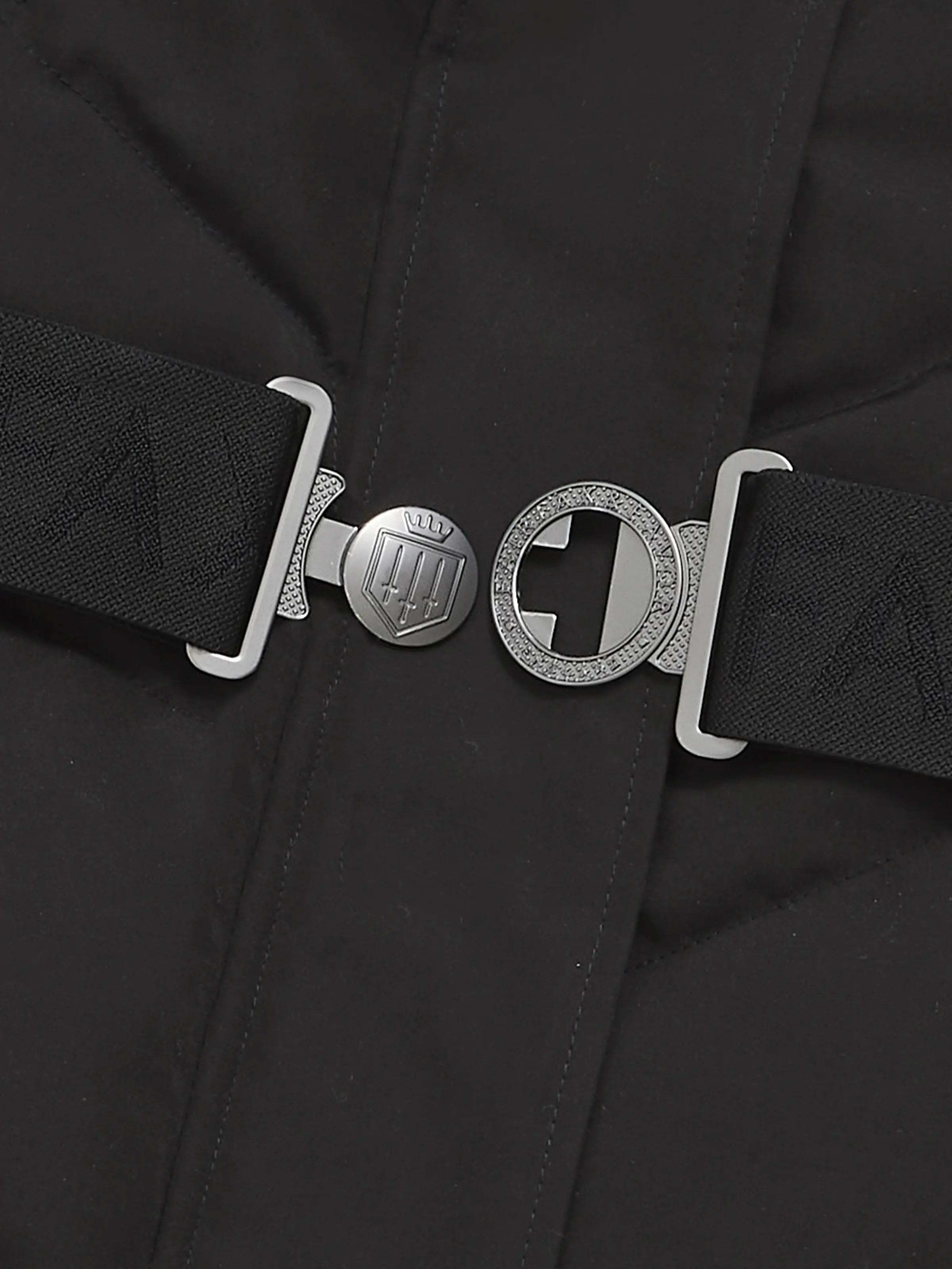 - Branded adjustable belt, zip pulls and poppers: unmistakably Fairfax & Favor