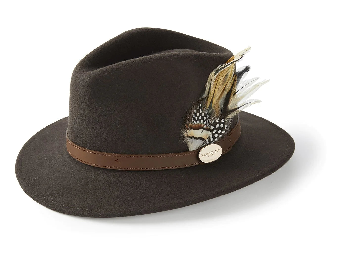 The iconic wool felt Suffolk Fedora is a timeless addition to your multi-seasonal wardrobe, hand finished with a cluster of natural feathers fastened behind a branded leather band.