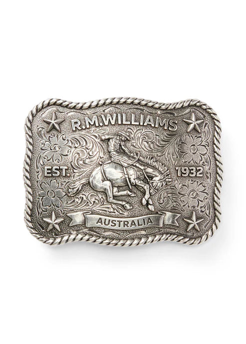 The Cloudbuster Trophy Buckle by RM Williams is a stylish buckle which can be worn with the RM Williams Stockman 1.5" Belt. The Cloudbuster Trophy Buckle can be sold along with the appropriate belt or separately.