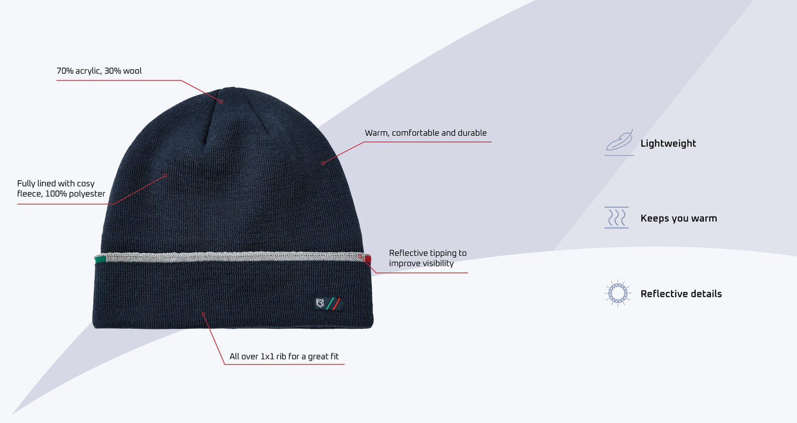 A well insulated beanie hat is essential for sailing in cold weather. The new Aquatech Castara style is fully lined with cosy fleece and ribbed to ensure a perfect fit. The main fabric is woven from acrylic-wool hybrid yarn with natural fibres for optimum comfort and synthetic fibres for durability, ultimate insulation and quick-drying performance. Another great feature for sailors that sets it apart from regular beanies is the band of reflective material around the brow that will be a godsend in any man overboard situation at night.