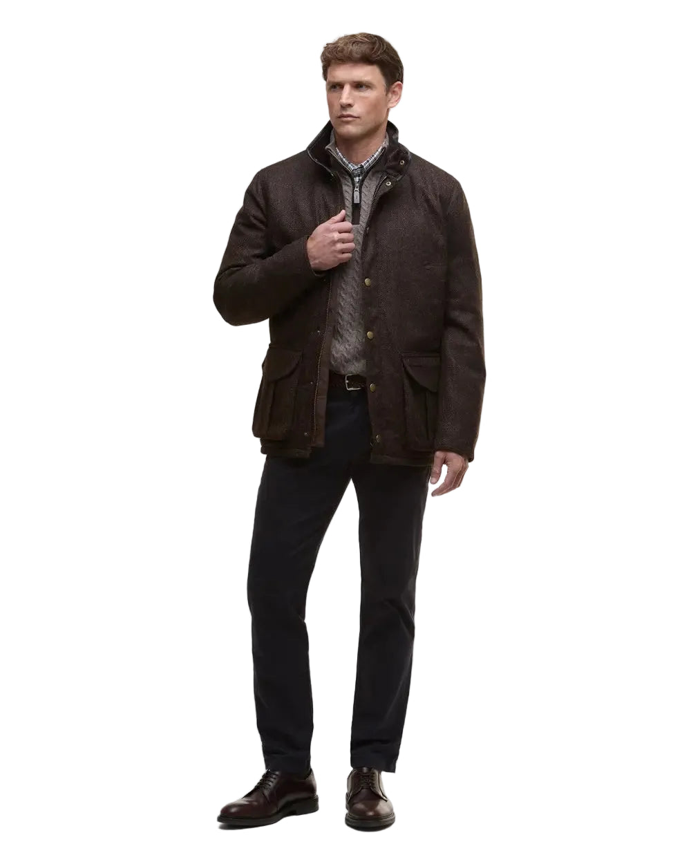 Barbour Hereford Men's Tweed Wool Jacket - Rustic Brown