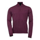 Quarter zip neck sweater in soft 100% Italian merino wool, with contrasting color at cuffs and inside neck opening.