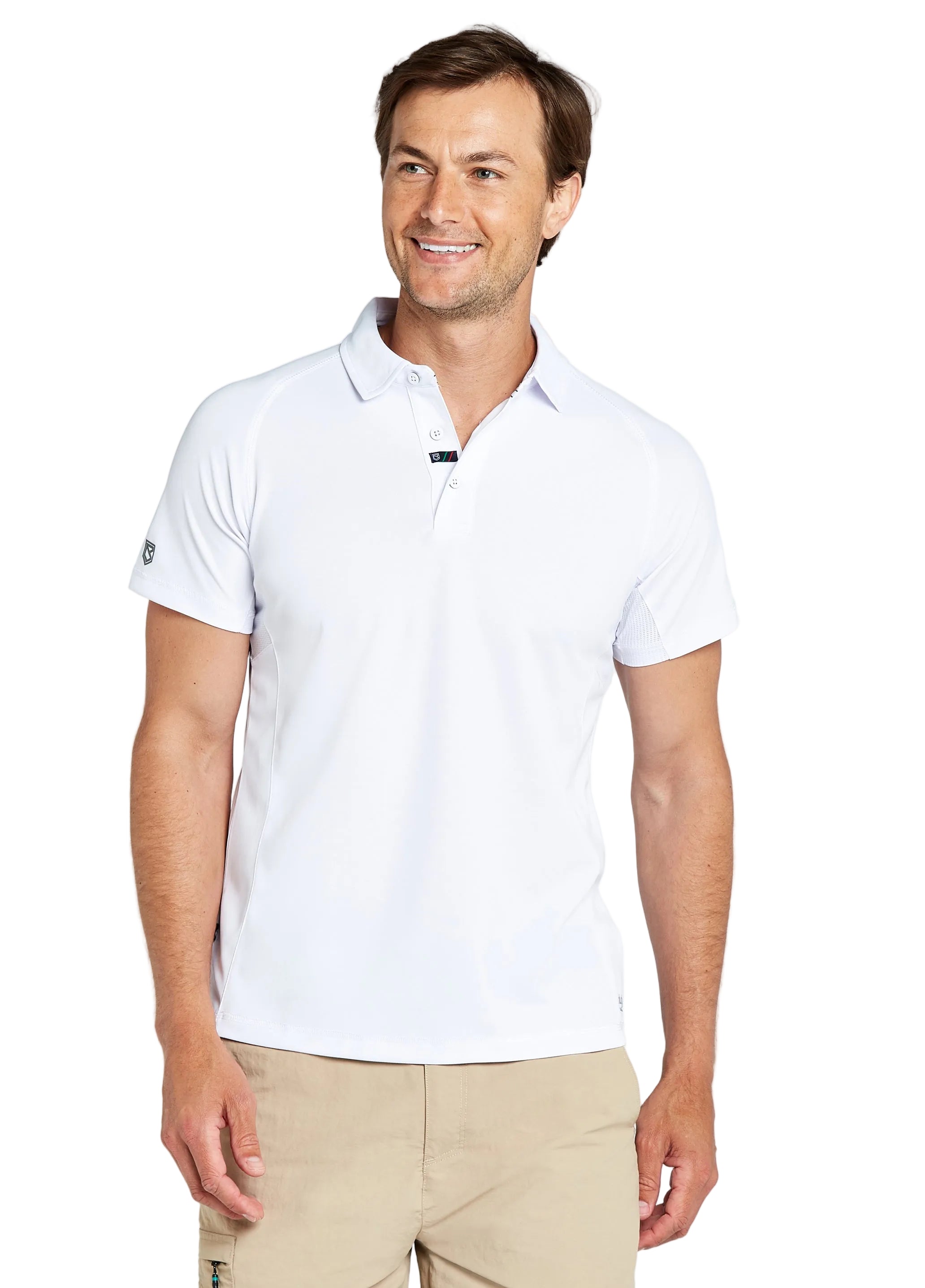 Menton is our new style of men's technical polo that delivers performance, comfort and protection with a perfectly tailored fit. The soft, lightweight, quick-drying fabric wicks away moisture from your skin while offering antimicrobial odour prevention. When you're out in bright sunshine it also shields you from harmful UV rays, with UPF-50 protection the equivalent of an extra-strong sun protection. Breathability is enhanced in all the right places with a high-performance perforated fabric and there is also a built-in loop to hold your sunglasses securely, plus a handy eyewear cleaning patch discreetly hidden in the hem.