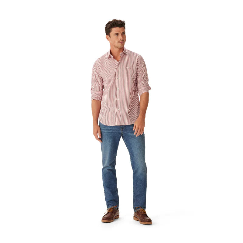 R.M. Williams The Poplin Men's Stripe Regular Shirt - Red/White