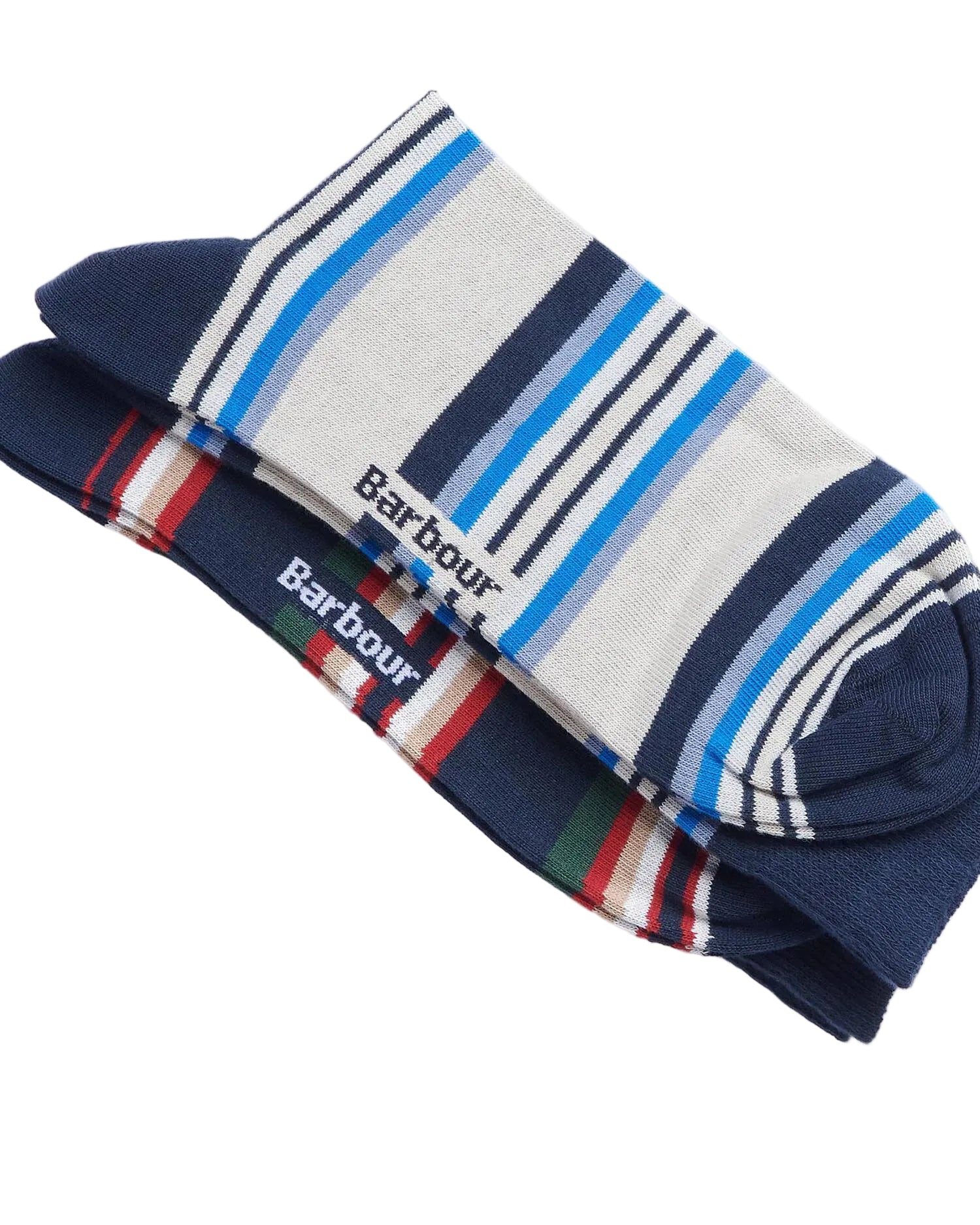 The Barbour Summer Stripe 2 Pack offers two cotton blend socks with seasonal stripes for an uber soft addition. This two pack feature Barbour logos to the sole of the socks.