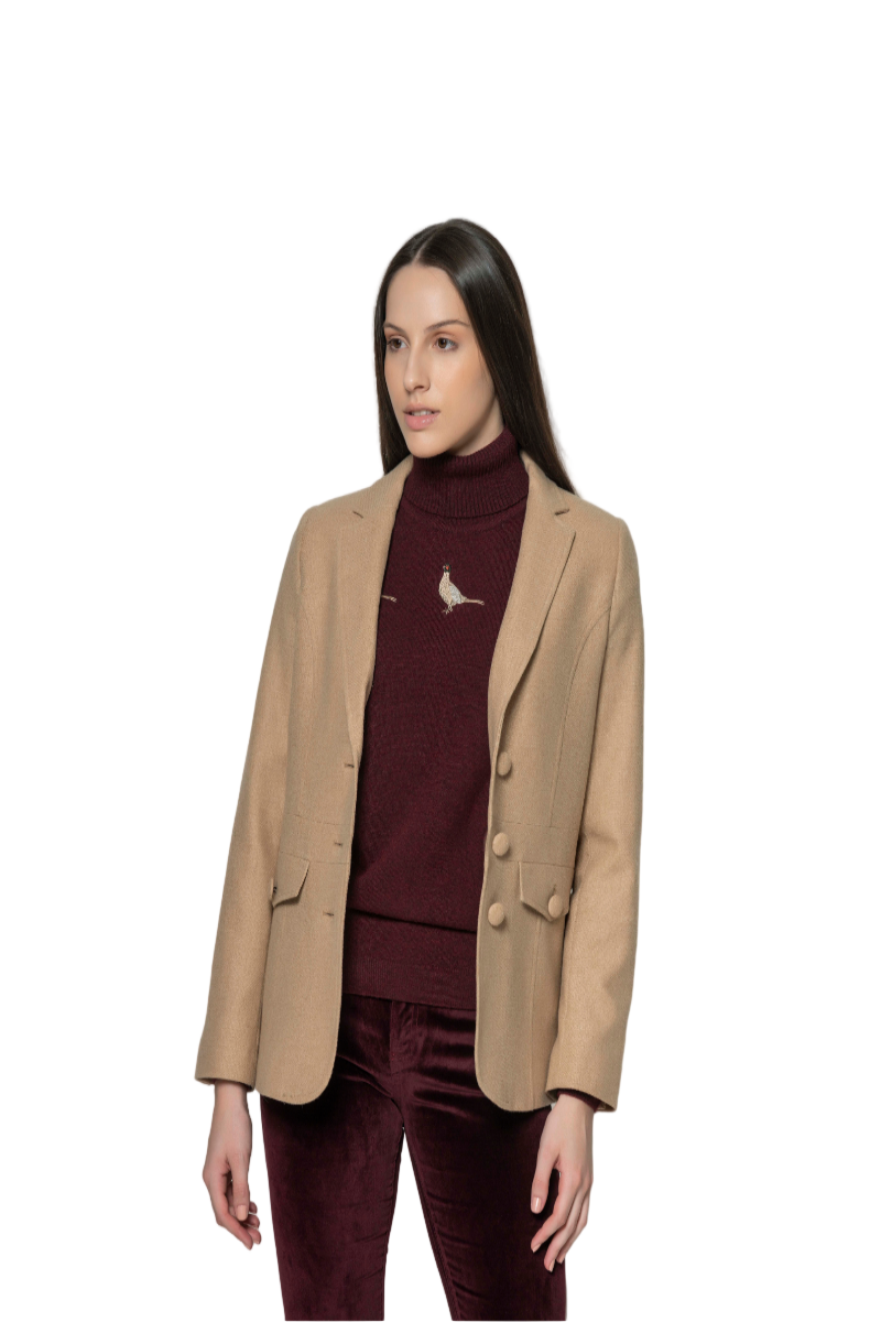 New from Hartwell, the Lilian blazer is made from pure wool. It features a faux suede collar for comfort, suede elbow pads and jetted front pockets with flaps. The jacket is fastened by two brown front buttons. The embroidered Hartwell stag logo just below the pocket adds a touch of elegance to the jacket. In a perfect colour for this Autumn season, the Lilian jacket will compliment so many other colour tones. Pair with a smart shirt, Demin jeans and long boots for a country style perfect for wearing to the races.