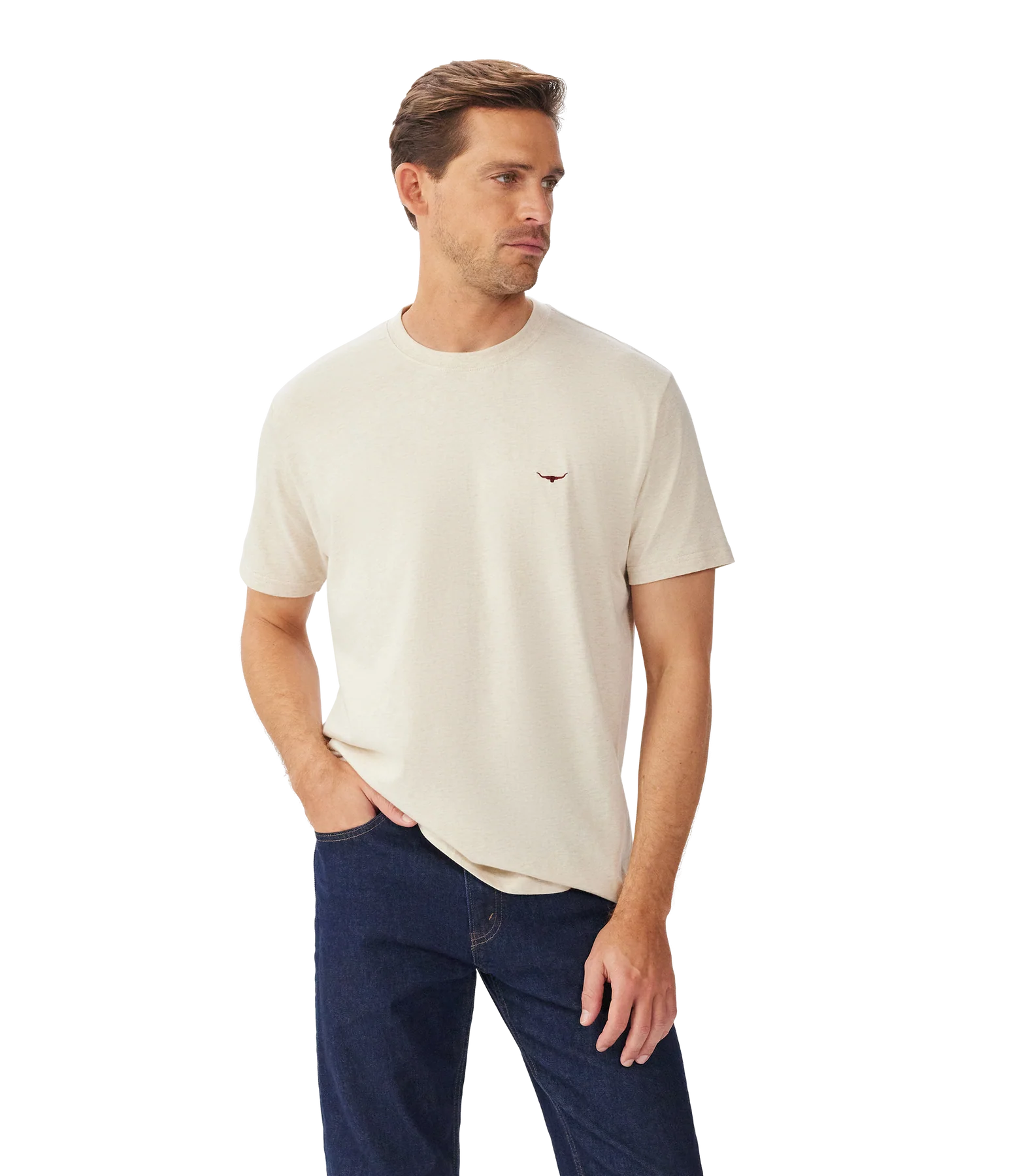 The R.M. Williams Parson T-Shirt delivers understated style and everyday comfort in a refined, easy-to-wear essential. Crafted from soft cotton jersey, the fabric feels smooth and breathable while offering a clean finish that holds its shape wear after wear. Cut in a regular fit with a classic crew neckline and short sleeves, the T-shirt sits naturally on the body, making it ideal for wearing on its own or layering under shirts, knitwear or jackets. Subtle R.M. Williams branding at the chest adds a discreet touch of heritage character without overpowering the minimalist design.