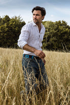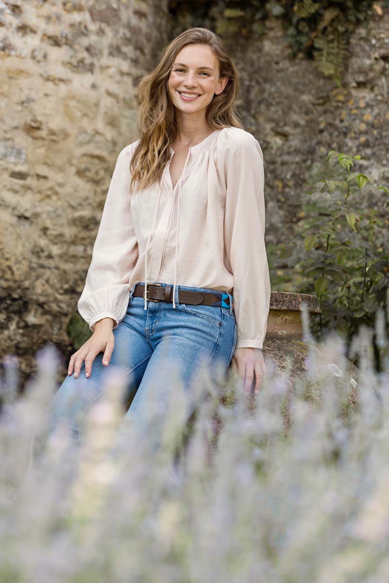 The contrast of elements and textures in these premium belts is what makes them really special. The waxed saddlery threads are set against rich buttery leather, with brushed antique brass finished hardware to top it all off.