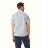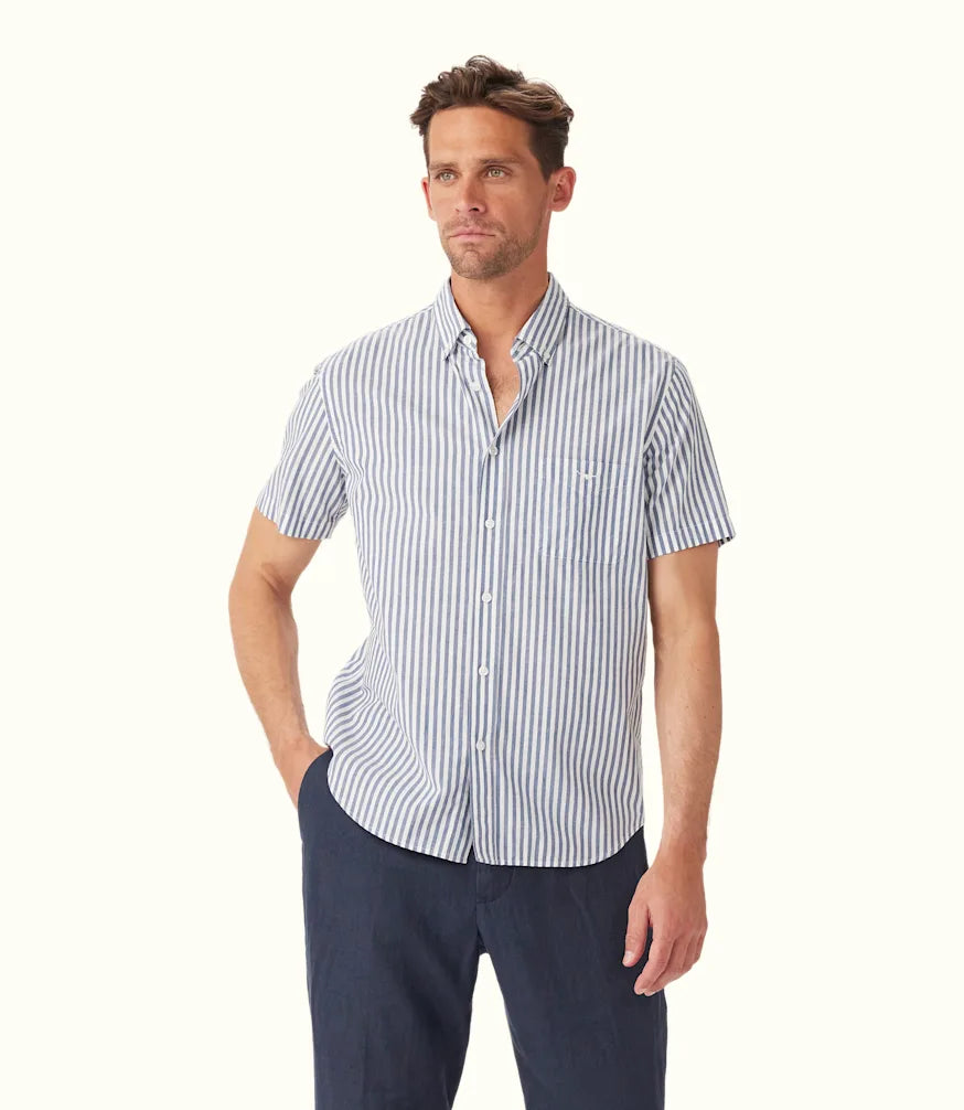 A modern update on our bestselling regular fit shirt, with a slimmer cut, short sleeves and a classic button down collar. This edition is crafted from striped organic cotton.