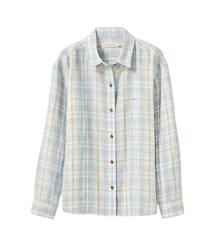 Add effortless style to your wardrobe with the women's R.M. Williams Hopeland Check Linen Shirt. This relaxed fit piece is crafted from premium yarn dyed French linen, offering a breathable and lightweight feel. The regular collar, front placket with contrast buttons, and full-length sleeves with single button cuffs lend a classic, polished look, while the curved hem adds a modern touch. Longhorn embroidery at the chest brings subtle branding to this timeless check pattern. Perfect for layering or wearing solo, this 100% linen shirt is an easy-going yet refined staple for any occasion.