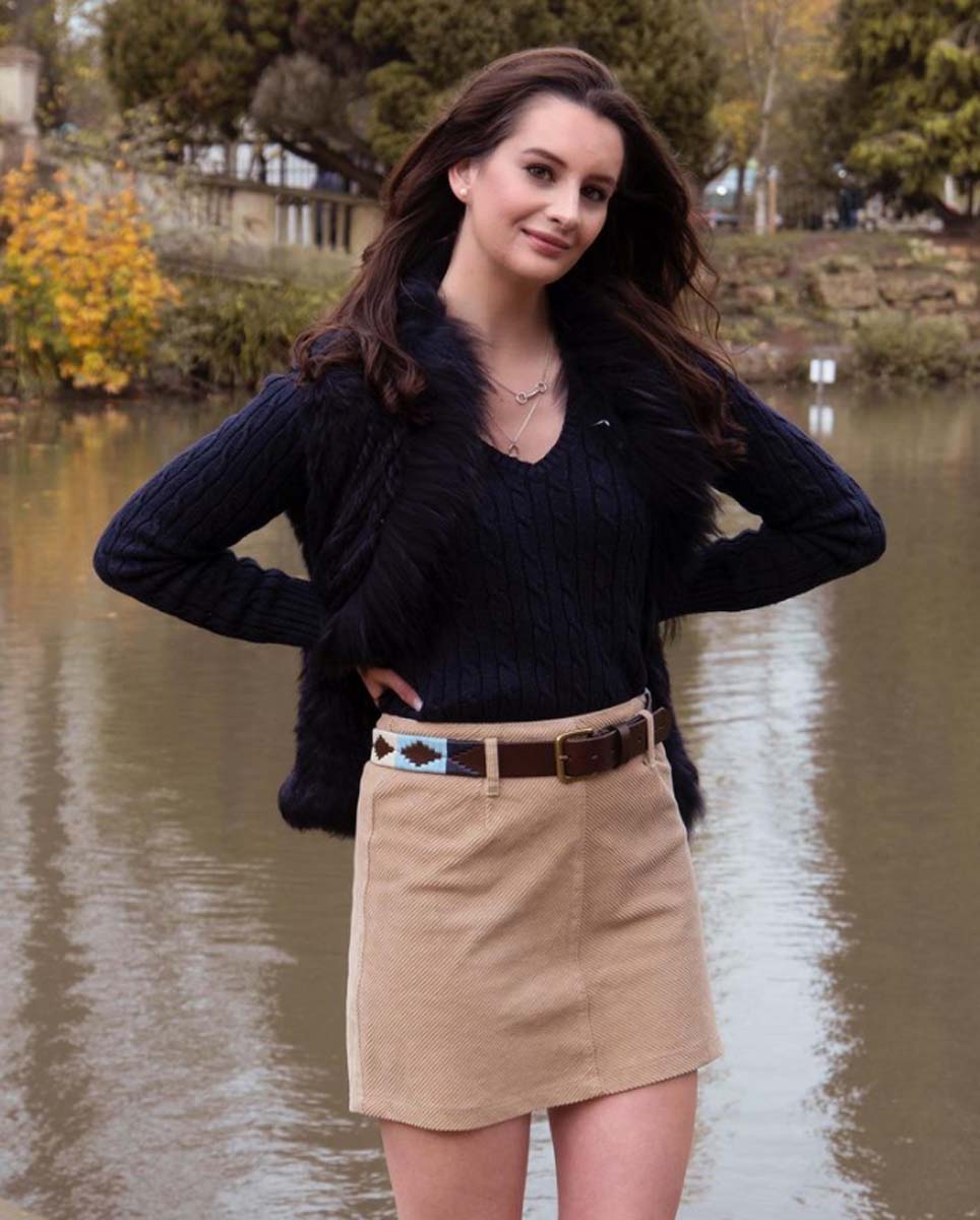 The blue, navy and cream threads contrast beautifully set against the rich Havana brown of the buttery Argentine leather belt, which is completed with a stunning antique brass coloured buckle. This belt is perfectly teamed with jeans, chinos, polo whites and denim cut-offs. For both men and women, the Sereno pampeano polo belt is the ideal accessory both on and off of the polo pitch and even for a spot of sailing along the Rio de la Plata itself.