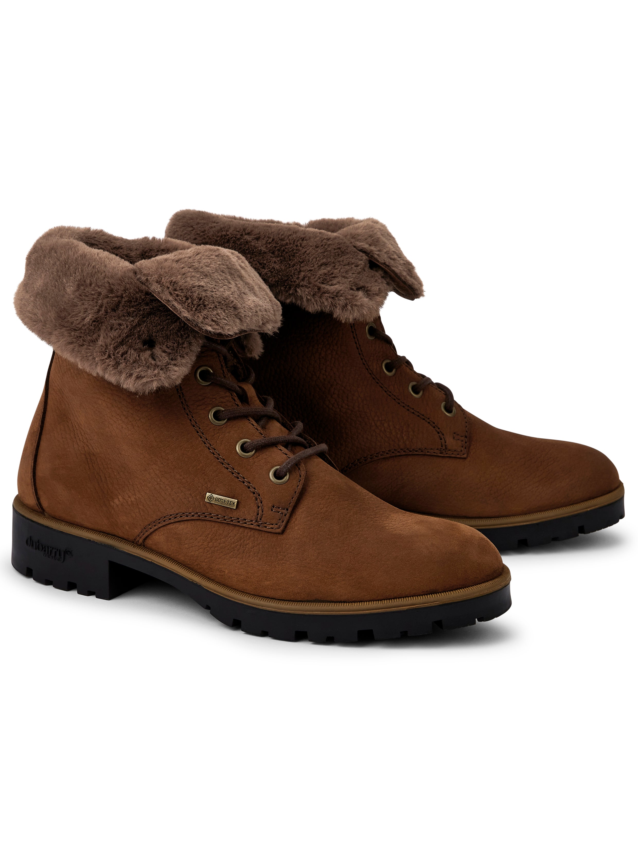 A perfect combination of cosy and rugged, these fold down ankle boots have a biker boot feel but are lined with snuggly faux fur. Packed with weather resistant technology, from Dubarry's DryFast-DrysoftTM leather and GORE-TEX lining to shock absorbing, gripping soles, they are ideal weekend style with an edge - a great partner to Dubarry leather and wax winter jackets