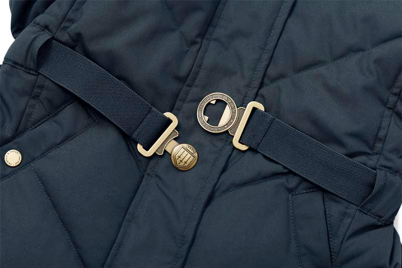 - Antique brass branded belt buckle, zip pulls and poppers: unmistakably Fairfax & Favor