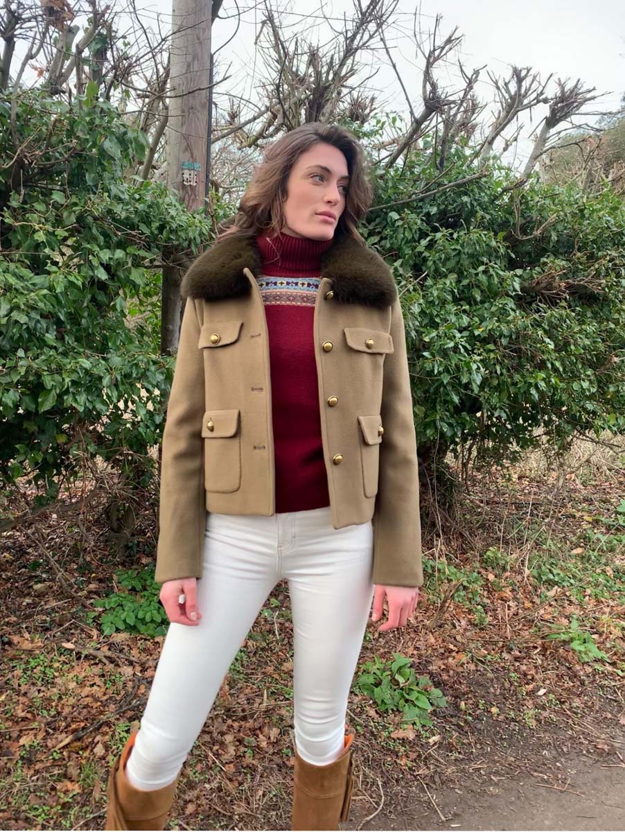 The detachable faux fur collar adds an extra touch of glamour to the coat and allows for some versatility in styling, depending on the occasion or personal preference. This feature also makes the coat more practical, as it can be easily removed and re-attached as needed.