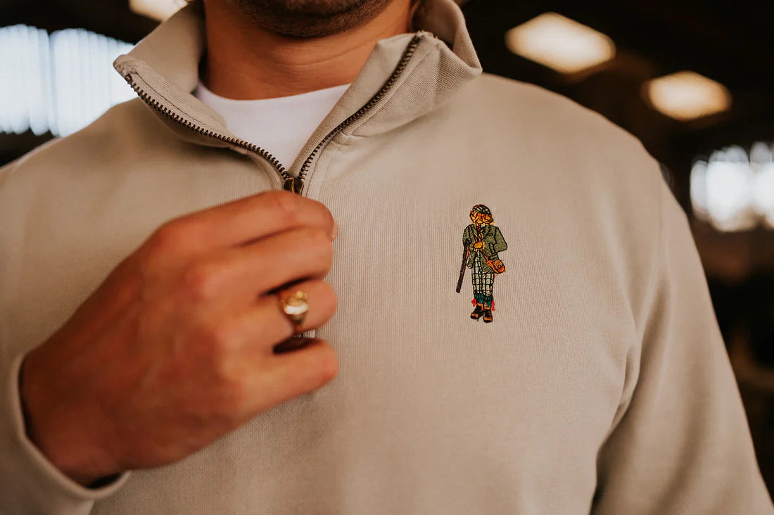 Channeling the timeless elegance of a classic double-barrel shotgun, the Double Barrel Quarter Zip is crafted for those who appreciate both tradition and fine details in equal measure. This sage green quarter zip combines countryside charm with a modern edge, making it a versatile choice for days out in the field or nights by the fireside. Inspired by the craftsmanship of a well-balanced double-barrel, this piece reflects the art of the shoot—where precision, heritage, and style come together. The rich sage green brings to mind the mossy hedgerows and rolling hills of the British countryside, while subtle design touches nod to the meticulous detailing found on a fine shotgun. Finished with a sturdy quarter zip and ribbed collar, cuffs, and hem, this piece offers both comfort and durability, allowing it to stand up to both field adventures and fireside gatherings. Whether you’re tracking game or enjoying a well-earned pint at the end of the day, the Double Barrel Quarter Zip is a symbol of refined yet rugged style. The design is perfect for layering, giving you the freedom to take on brisk mornings and cooler evenings with ease, all while maintaining a look that’s both classic and contemporary. Slip on the Double Barrel Quarter Zip and carry a piece of heritage with you, wherever your countryside travels may lead. With a style that’s as enduring as the traditions it honours, this zip-up is an instant favourite for any true country gent (or lady) who values quality and timeless charm.