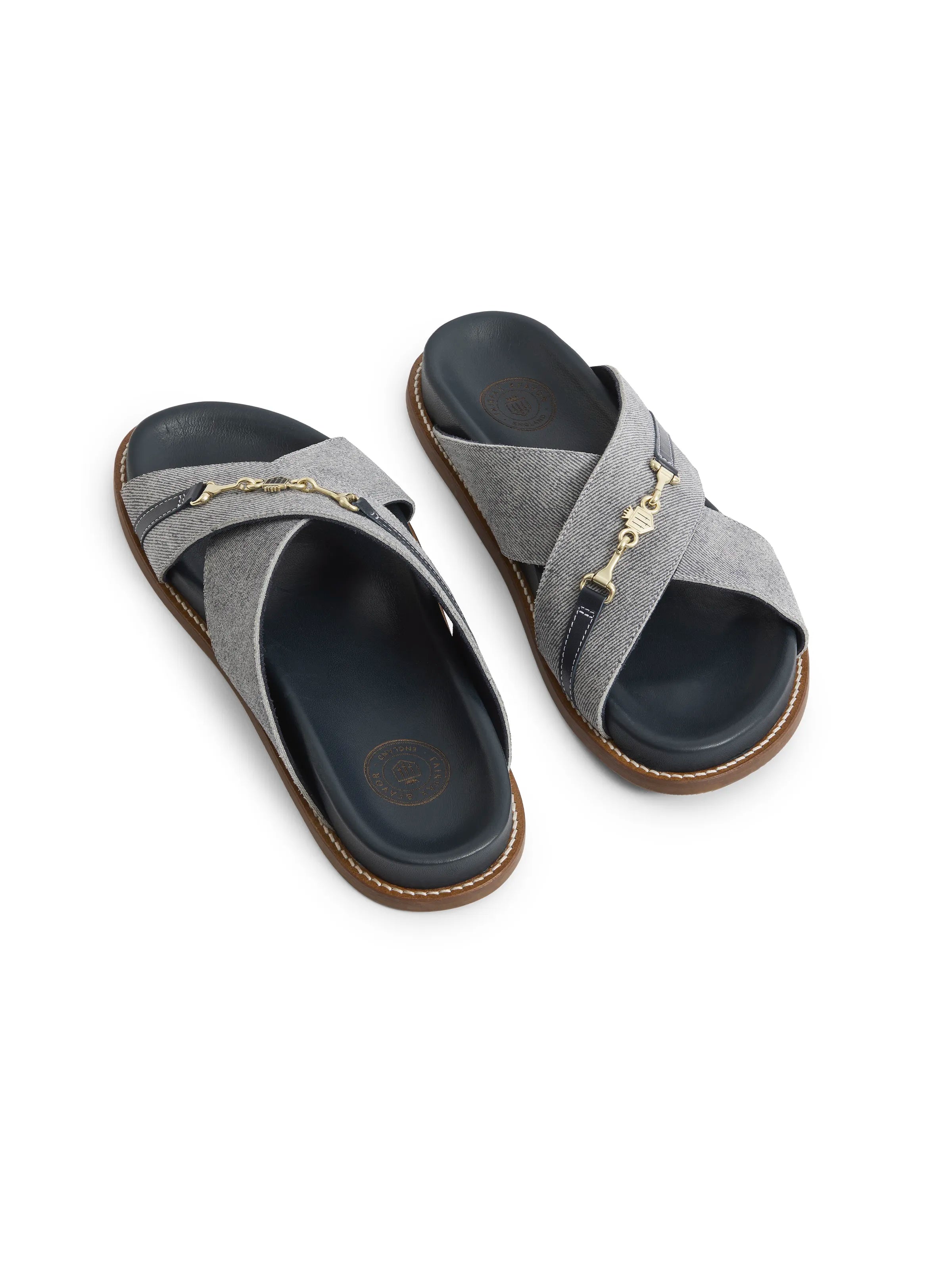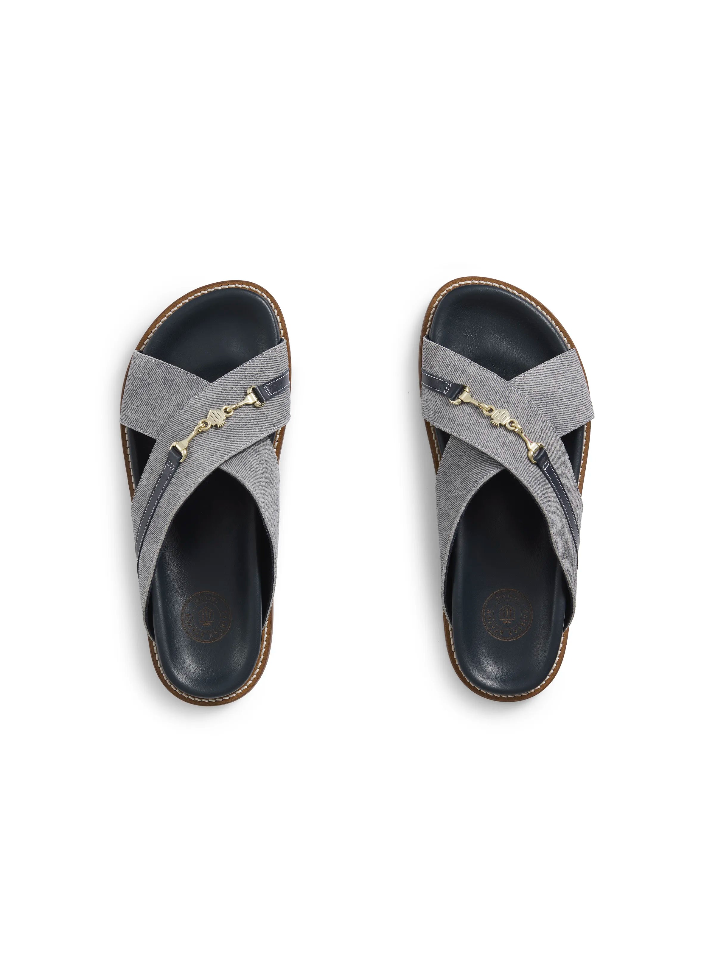 A slide with a refined twist, the Southwold is our first ever footbed sandal with a comfortable, deeply moulded and padded sole so you don’t have to compromise on style, even when you’re on your feet all day. In our new denim-look suede, finished with our signature branded bit hardware on its elegant crossover strap, it feels and looks fantastic.