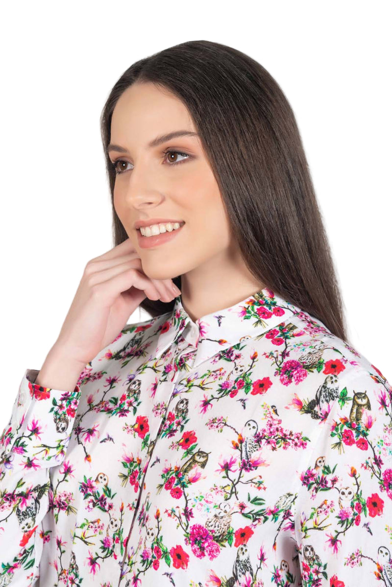 Hartwell Lydia Women’s Luxury Viscose Shirt - White Owls