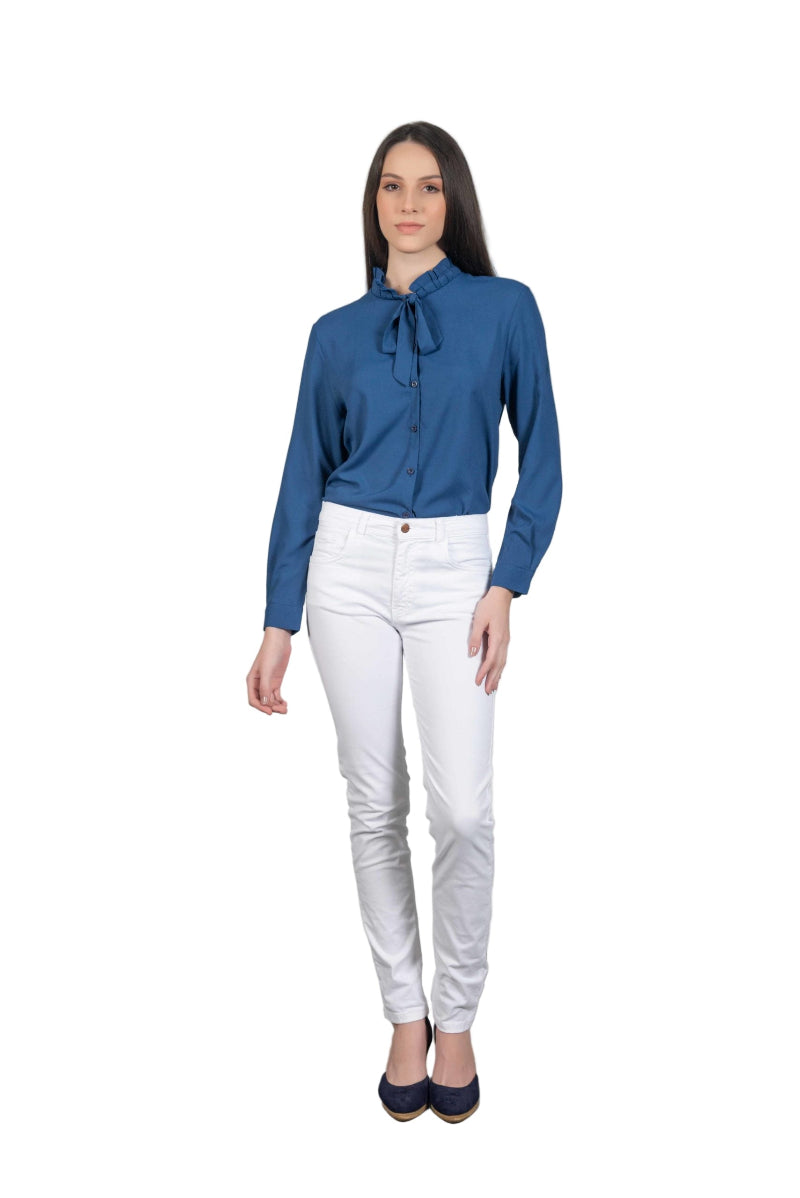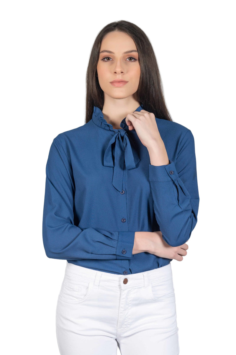 Hartwell Fran Women’s Frill Neck Tie Blouse - Navy