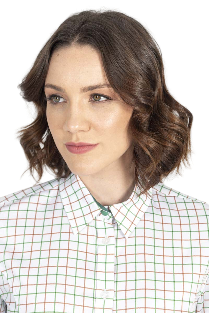 This brand new Check print has gorgeous pops of colour. 100% cotton satin lycra, it is a beautiful shirt with all the Hartwell details you’ve become accustomed to.