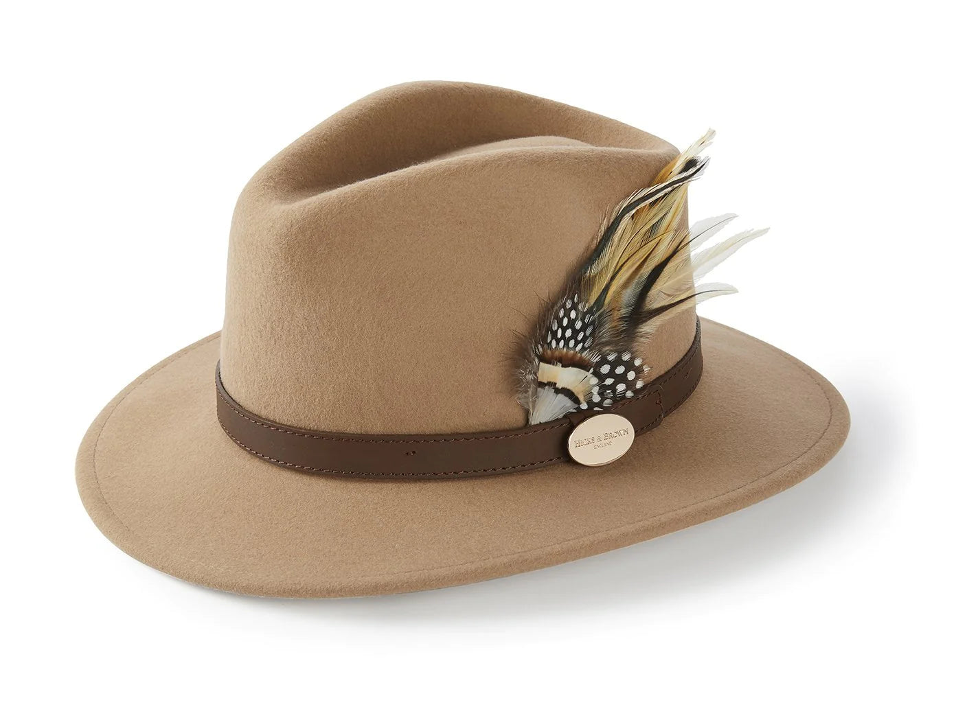 Hicks & Brown The Suffolk Women's Fedora - Camel (Guinea and Pheasant Feather)