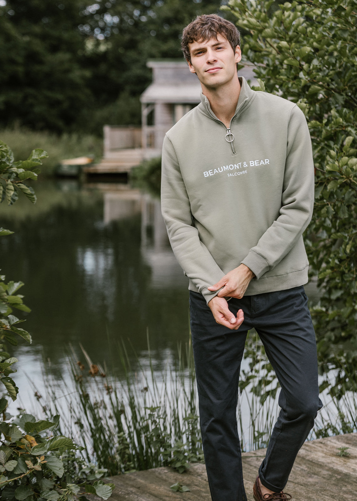 Beaumont & Bear Kingswear Unisex Quarter Zip - Olive