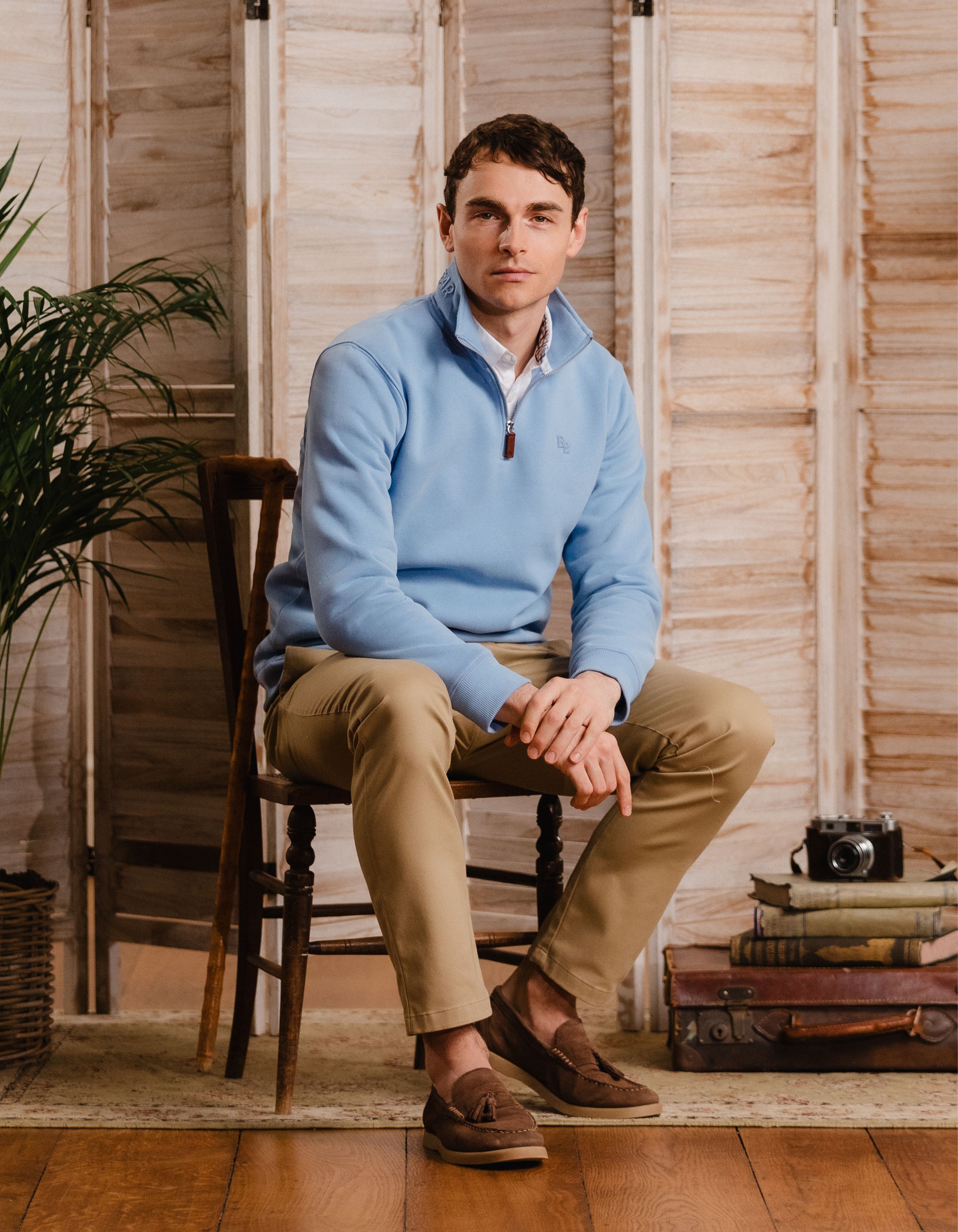 Beaumont & Bear Tuckenhay Unisex Quarter Zip - Cornflower Blue