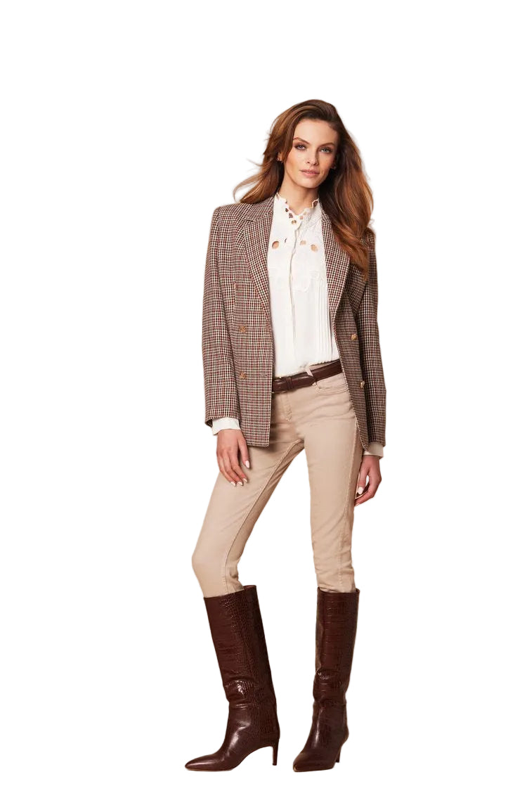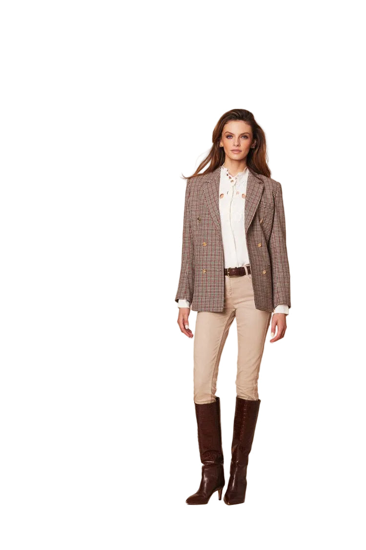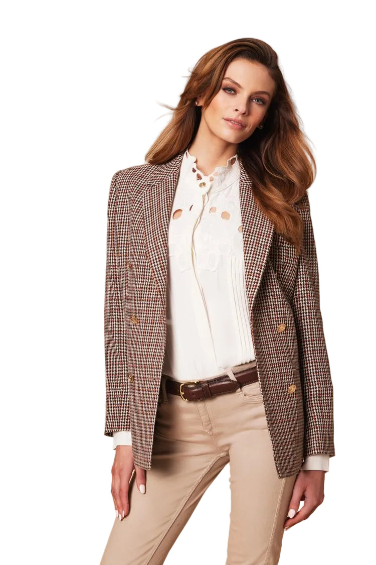 Introducing the perfect blend of luxury and affordability, our tweed Langley Blazer. This country-style blazer is designed to elevate your wardrobe with its classic and timeless design.