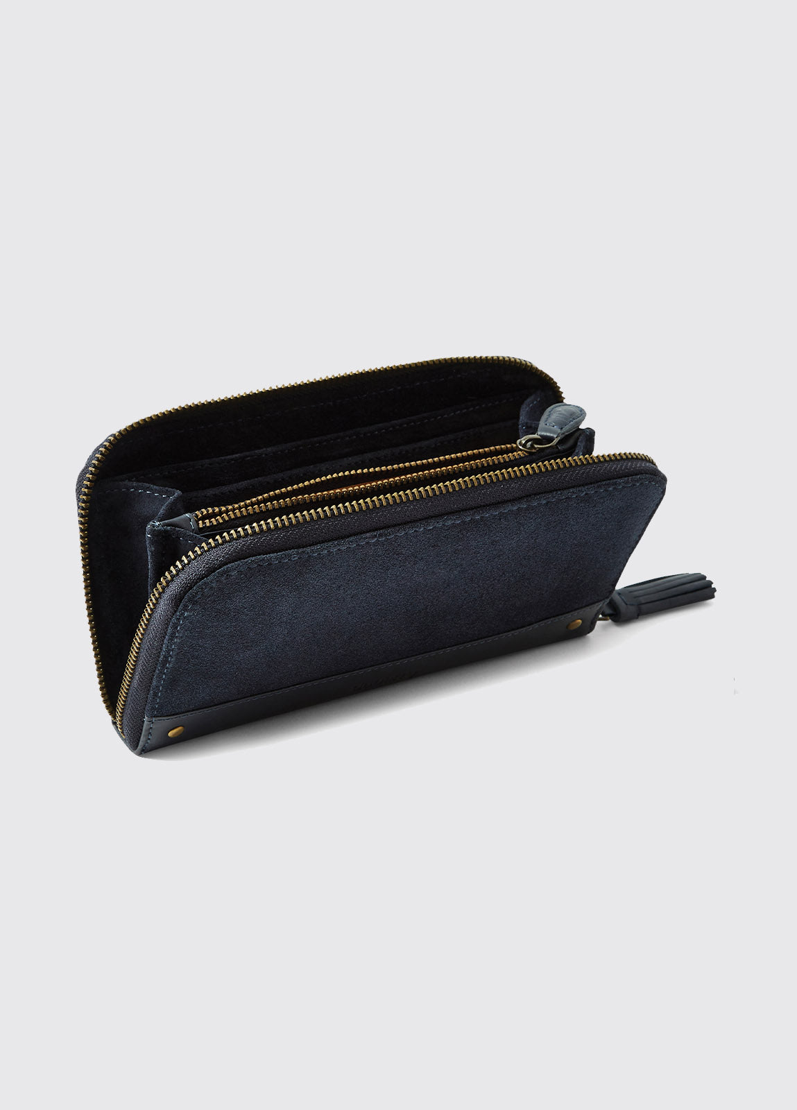 Made in superb quality suede and leather-trimmed, the Northbrook is a sleek purse, that compliments the Dubarry handbag and clothing range. RFID lined for security, it has a zipped coin pocket, note sleeve and credit card slots. A smart wallet to treat yourself to or great for a gift.