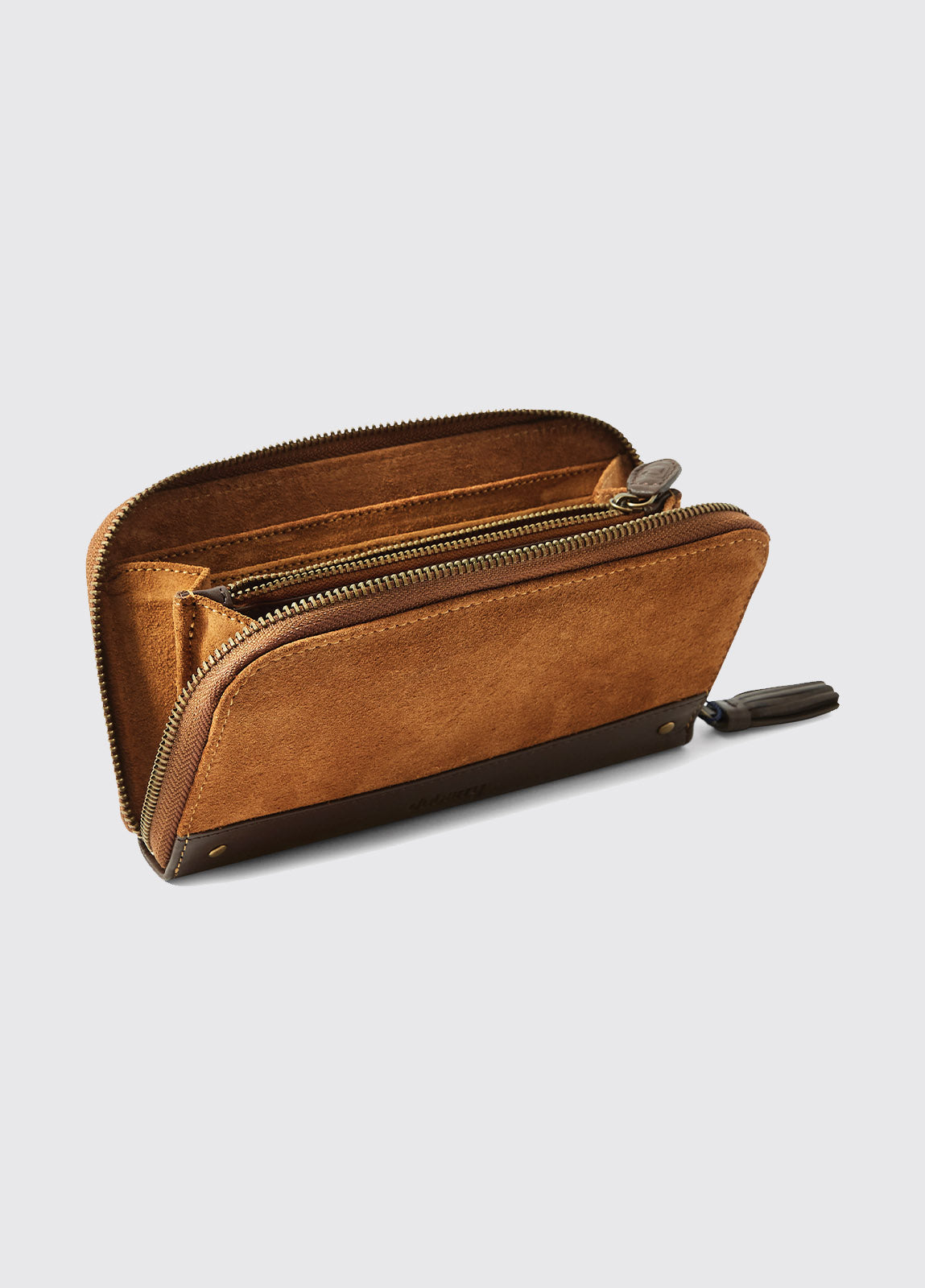 Made in superb quality suede and leather-trimmed, the Northbrook is a sleek purse, that compliments the Dubarry handbag and clothing range. RFID lined for security, it has a zipped coin pocket, note sleeve and credit card slots. A smart wallet to treat yourself to or great for a gift.