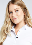 Fresh out of our design studio, Riviera is a new style of women's technical polo that delivers performance, comfort and protection with a perfectly tailored fit. The soft, lightweight, quick-drying fabric not only wicks away moisture from your skin while offering antimicrobial odour prevention. When you're out in bright sunshine it also shields you from harmful UV rays, with UPF 50 protection the equivalent of an extra-strong sun protection. Breathability is enhanced in all the right places with a high-performance perforated fabric and there's a built-in loop to securely hold your sunglasses, plus a handy eyewear cleaning patch discreetly hidden in the hem.