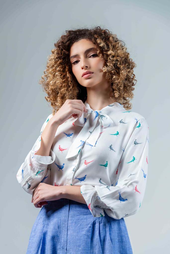 Hartwell Evie Women’s Blouse - White Colourful Pheasants