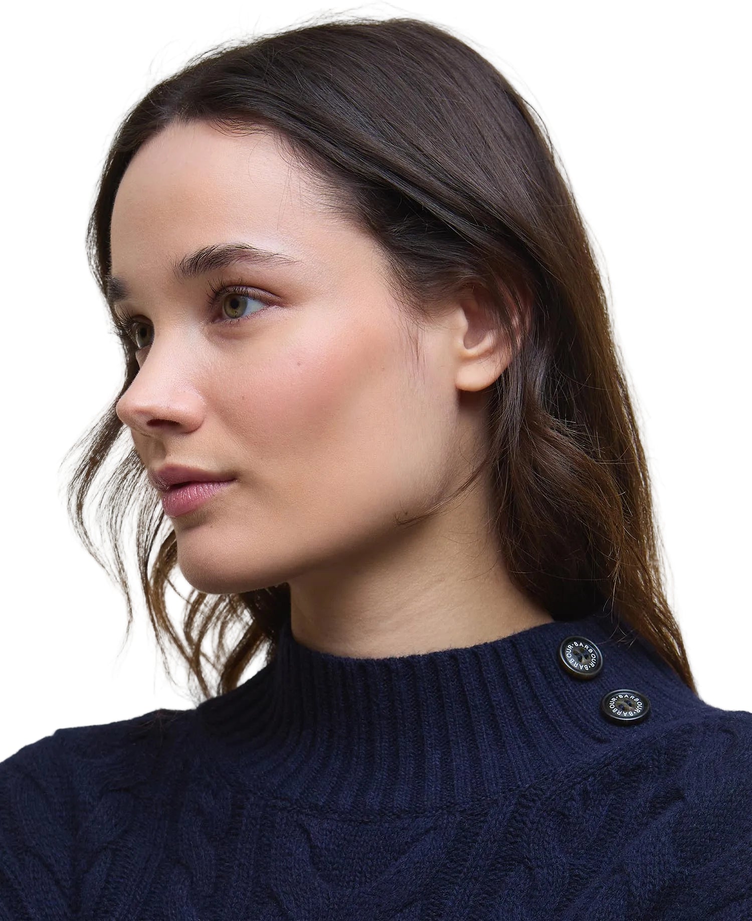 Wrap up in comfort with the Barbour Belford Knitted Mini Dress. Crafted from a cosy wool blend, this dress features a modern cable pattern, relaxed dropped shoulders, and a stylish funnel neck.