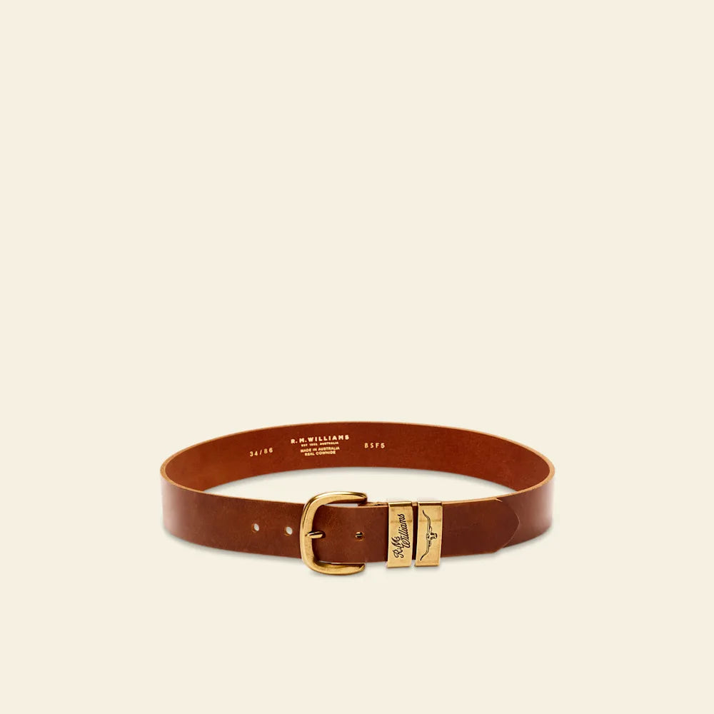 The iconic Drover Belt is an R.M.Williams classic, proudly crafted in our Adelaide workshop using heritage techniques and skills. It’s constructed with a durable pull-up leather in a 1 1/2″ strap, with a debossed signature Longhorn decal on the tip and an engraved gold buckle and keeper set. Pair it with your favourite boots and finish any outfit with this timeless wardrobe staple.